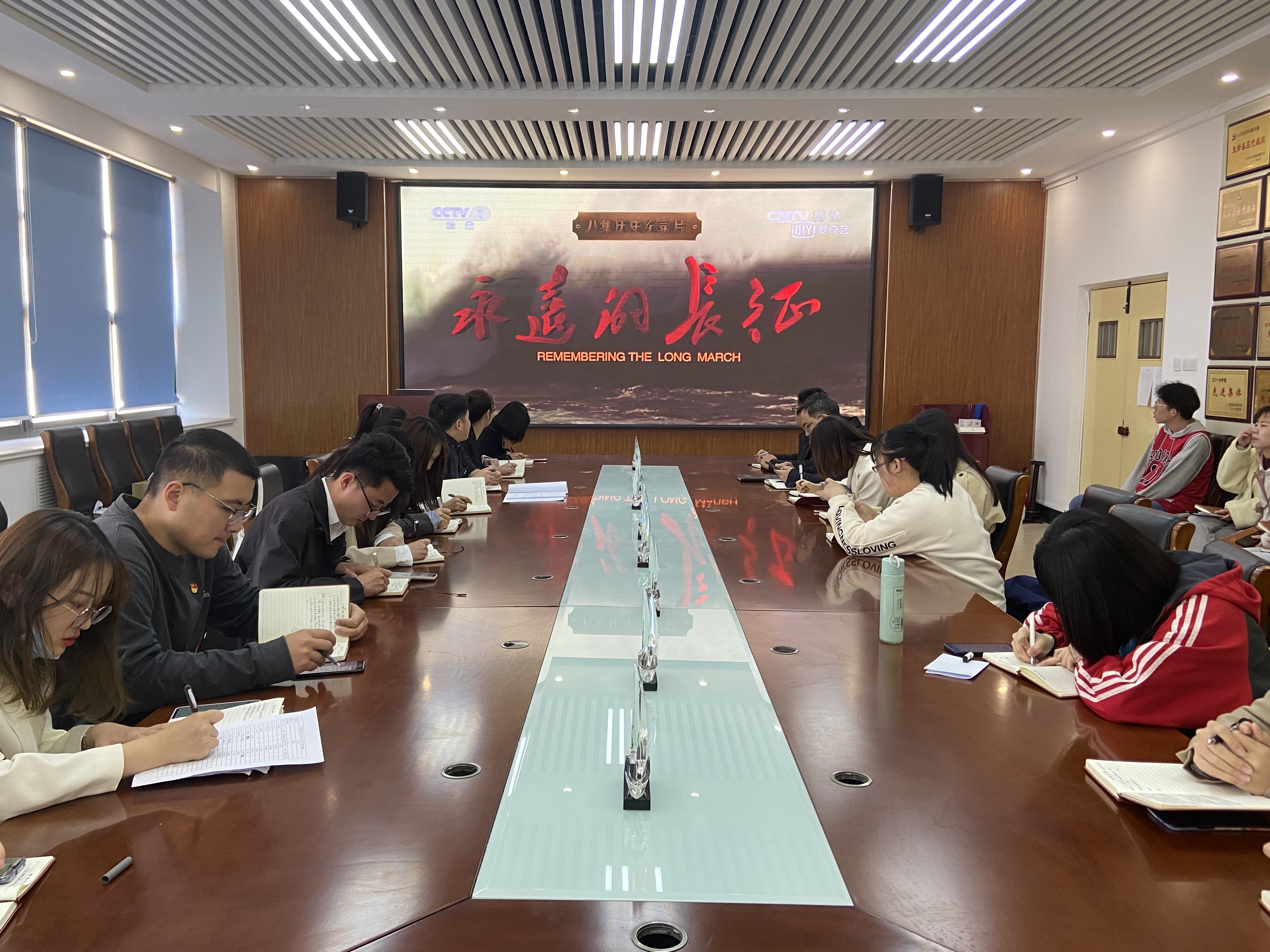 《永远的长征》纪录片集中了党史军史专家多年来的研究成果,以中央革命根据地反第五次“围剿”失败为切入点,详尽剖析了“左”倾错误的军事指挥所导致的反“围剿”失败,以及中国革命所面临的重大抉择。该纪录片见证了中华民族的成长,充分展现了红军不怕牺牲、前仆后继、忠诚爱国的长征精神。观看过程中,大家一起重温了长征过程中艰苦卓绝的岁月,深刻感悟到艰苦奋斗、甘于奉献的革命精神是取得胜利的根本保证。
