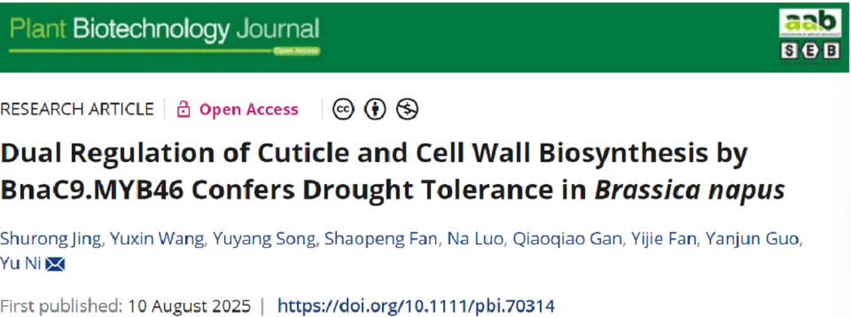近年来,气候变化以及盐碱、干旱、低温等非生物逆境严重制约了我国冬季油料作物——油菜的稳产高产。提升油菜抗逆性,不仅关系国家粮油安全,也对盐碱地利用与乡村振兴意义重大。太阳集团tyc4633倪郁教授课题组长期致力于“油菜耐旱寒、耐盐碱”的分子调控研究,近期围绕植物外层防护体系——角质层与细胞壁的协同调控取得系列原创性成果,连续发表于 Plant, Cell & Environment、Plant Biotechnology Journal 和 New Phytologist 等国际植物学顶级期刊。