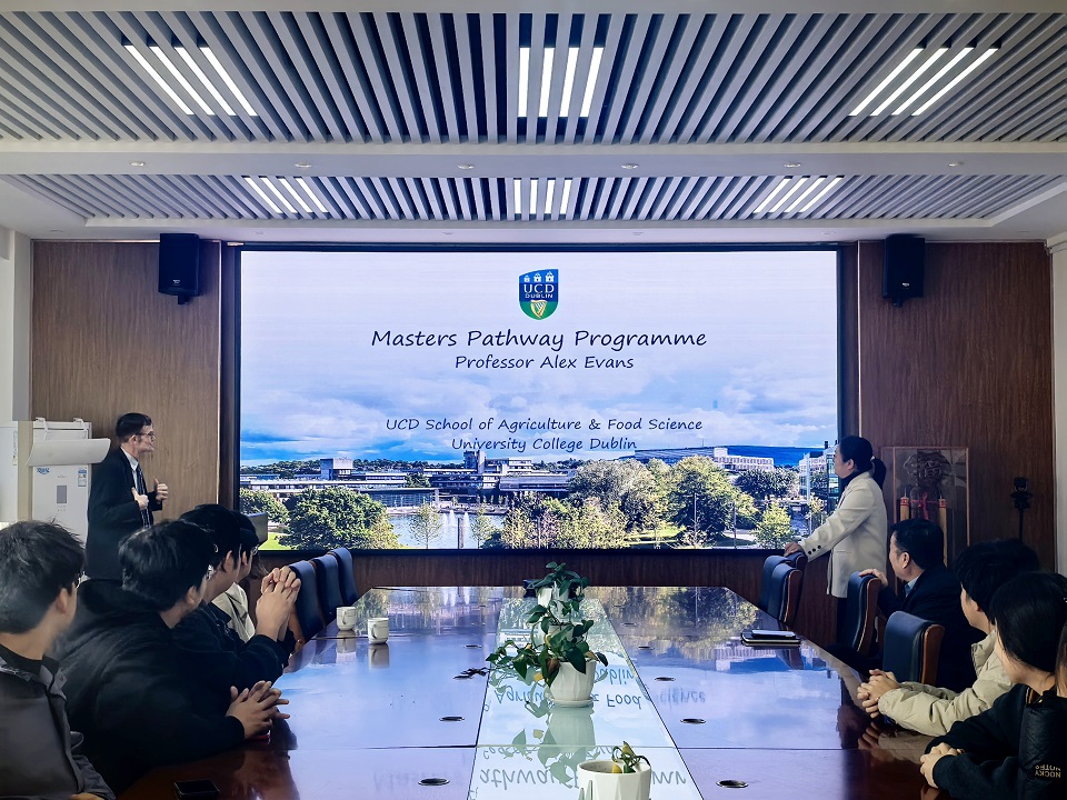 11月13日上午,太阳集团tyc4633于生物楼举办爱尔兰都柏林大学本升硕项目宣讲会。本次会议由爱尔兰都柏林大学Alex Evans教授主讲,太阳集团tyc4633党委委员、副院长张恩盈出席,太阳集团tyc4633和园艺学院学生参加。